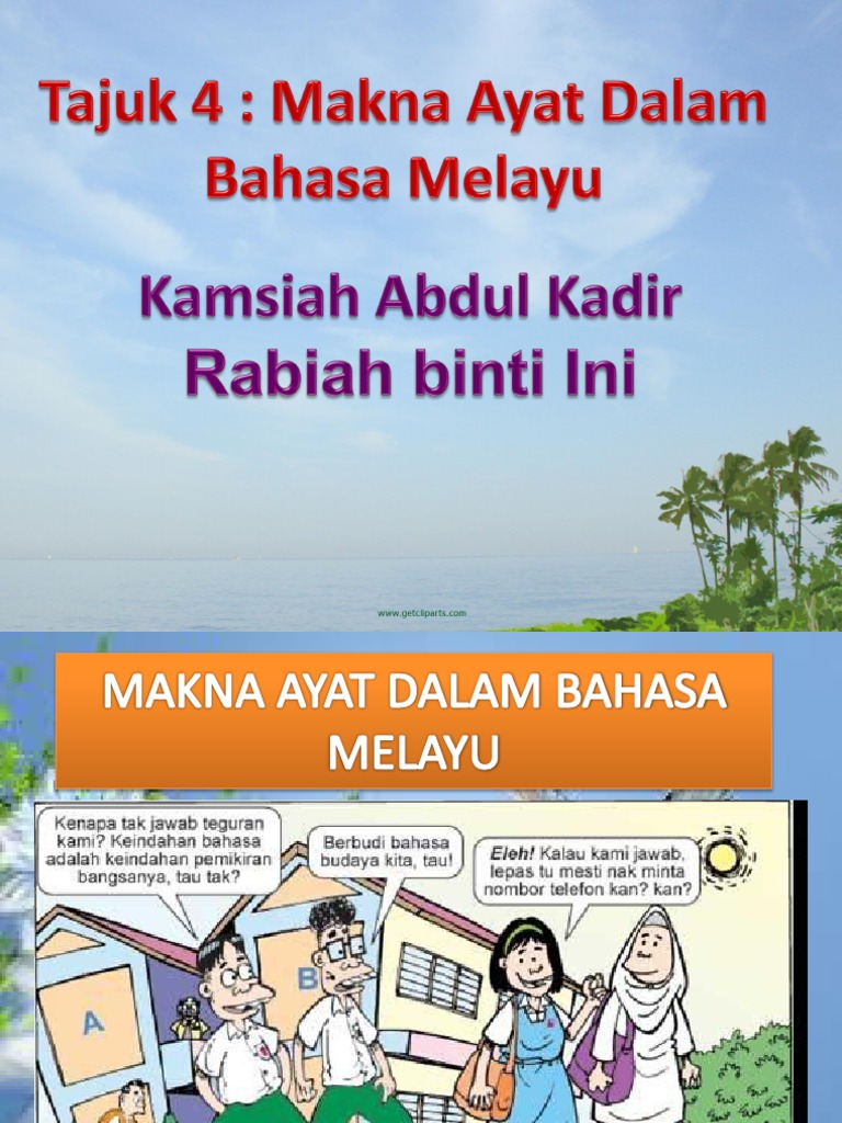 Tukar perkataan dalam buku artikel atau dalam jawatan media sosial secara automatik. Bererti Diingriskan Semantics Bahasa Melayu Semantik Satu bidang kajian makna yg mencakupi kebanyakan struktur. Terjemahan makna ayat kawniyyat yang terdapat dalam terjemahan al-Quran Bahasa Melayu sedia ada yang memfokuskan lima aspek penciptaan.