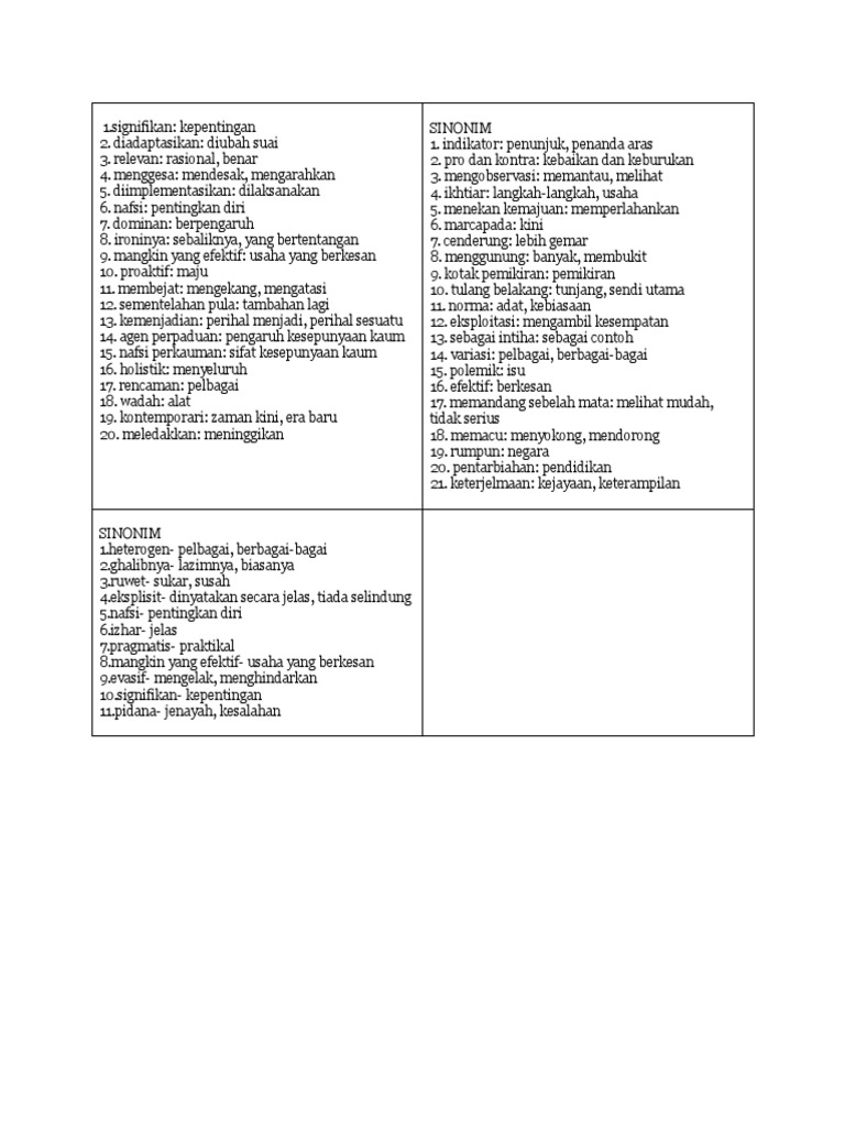 Menguntumkan senyuman yang melebar sehingga jelas kelihatan barisan giginya yang putih. 311 Menulis untuk membina ayat dengan membezakan makna kata istilah maksud rangkai kata dan ungkapan dengan betul mengikut konteks. Oleh itu penggunaan perkataan bahasa Inggeris dalam ayat tersebut menjadikan bahasa yang bercampur-campur atau disebut bahasa rojak.